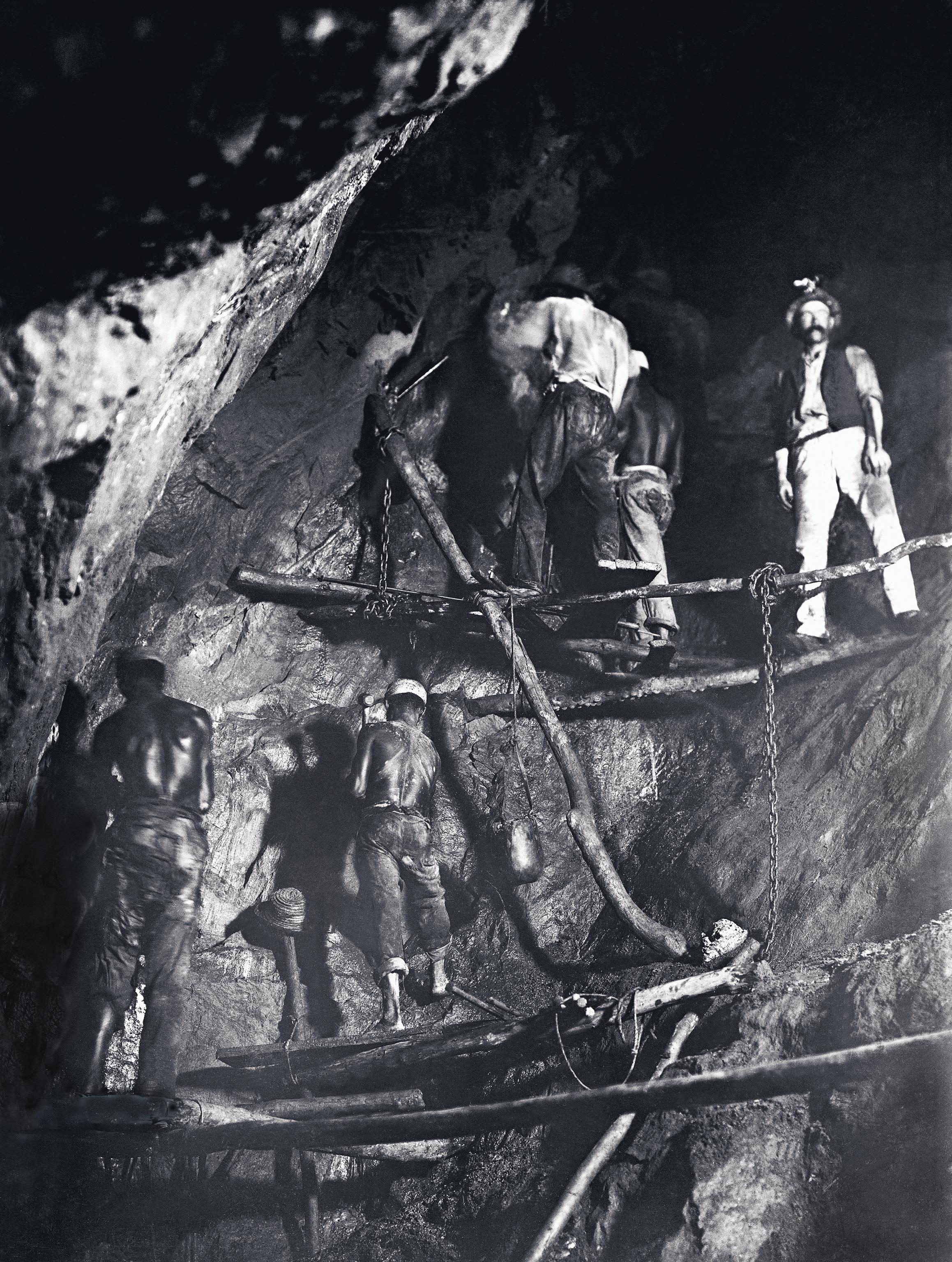 Título: Primeira foto do trabalho no interior de uma mina de ouro