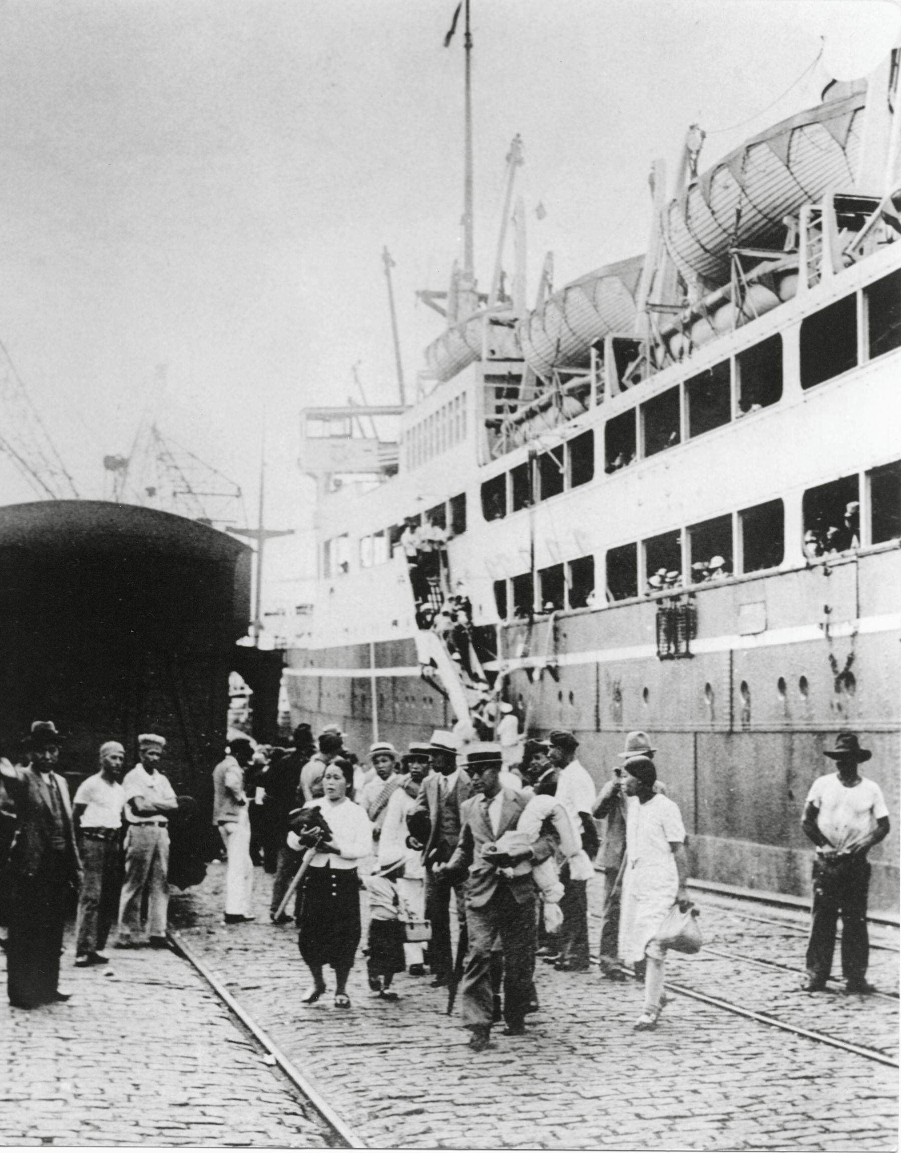 | Título: | Imigrantes japoneses desembarcando no Porto de Santos |